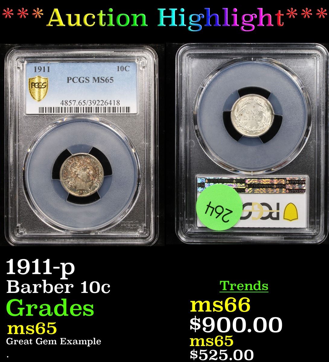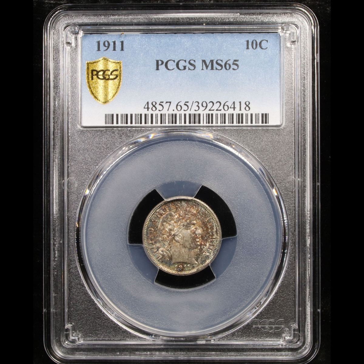 ***Auction Highlight*** PCGS 1911-p Barber Dime 10c Graded ms65 By PCGS.