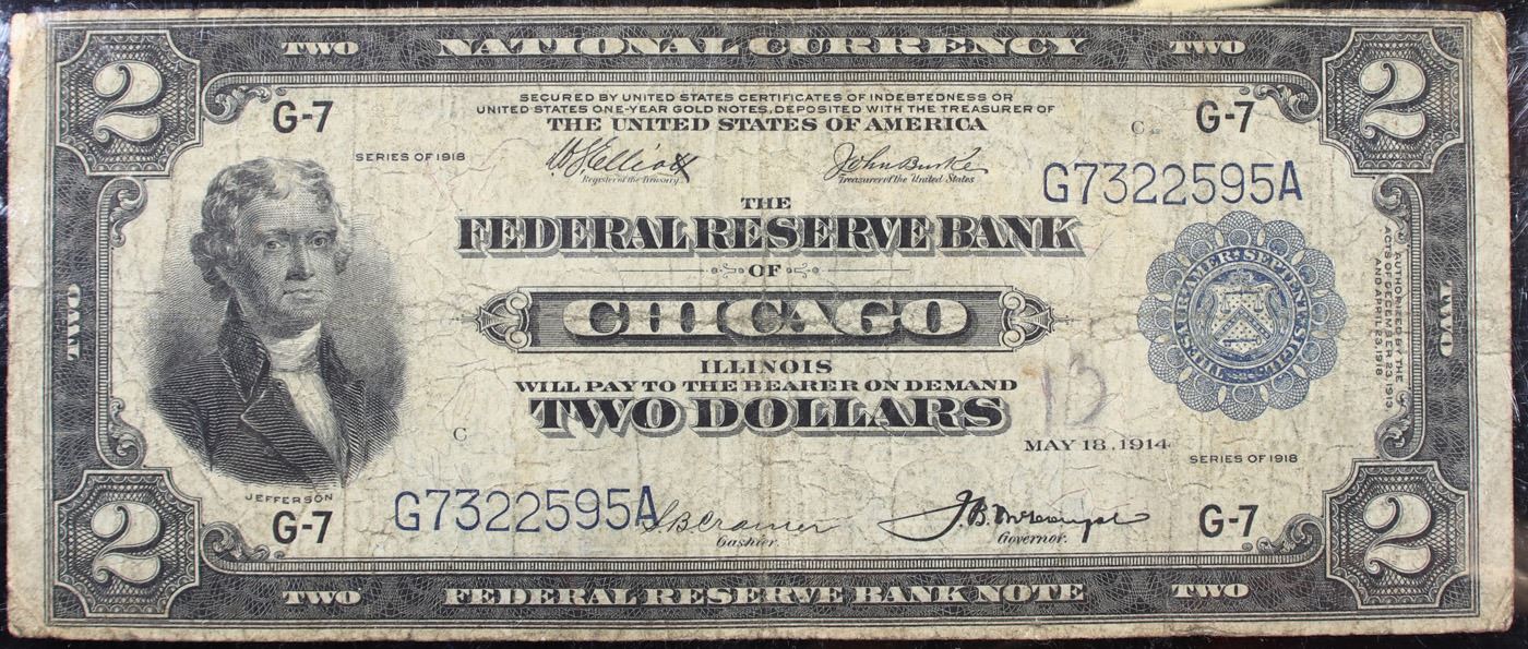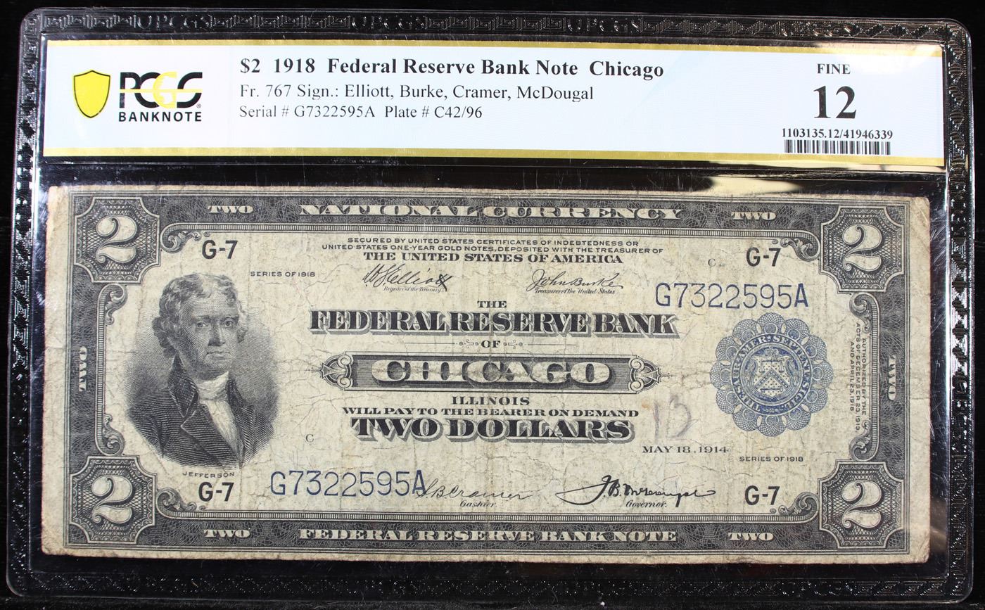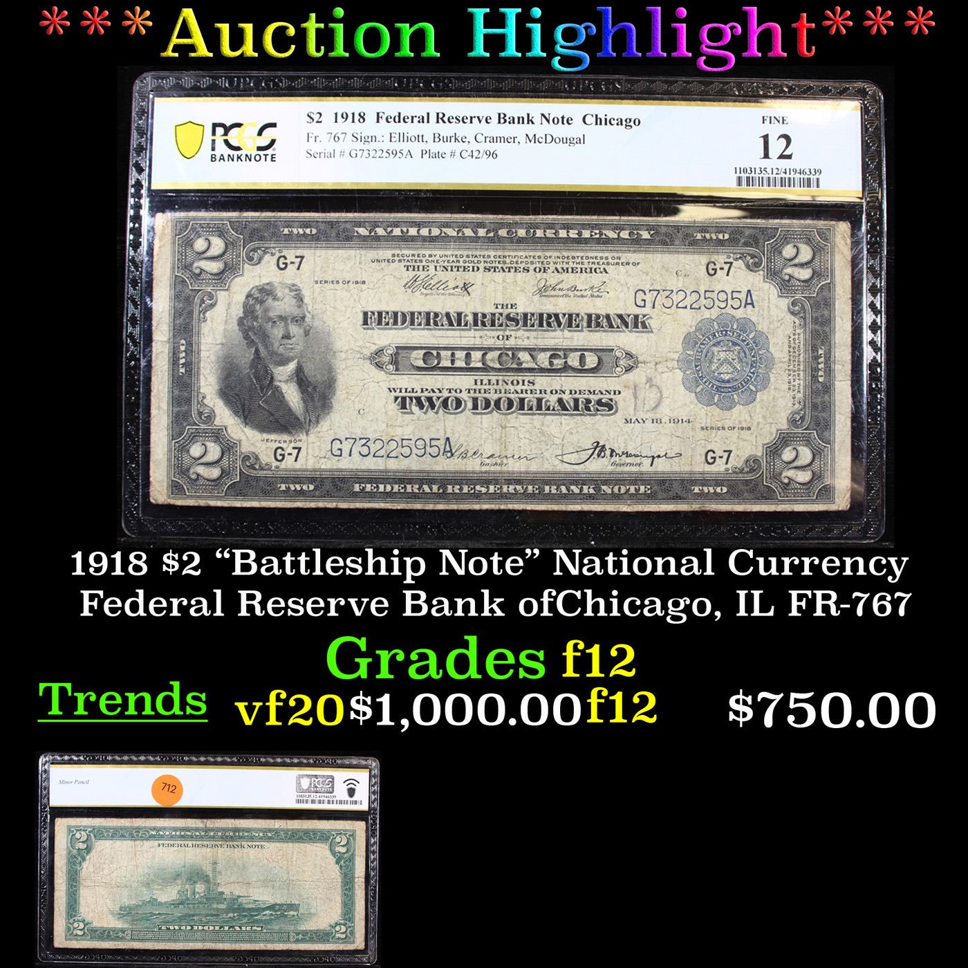 ***Auction Highlight*** PCGS 1918 $2 "Battleship Note" National Currency Federal Reserve Bank ofChicago, IL FR-767 Graded f12 By PCGS.