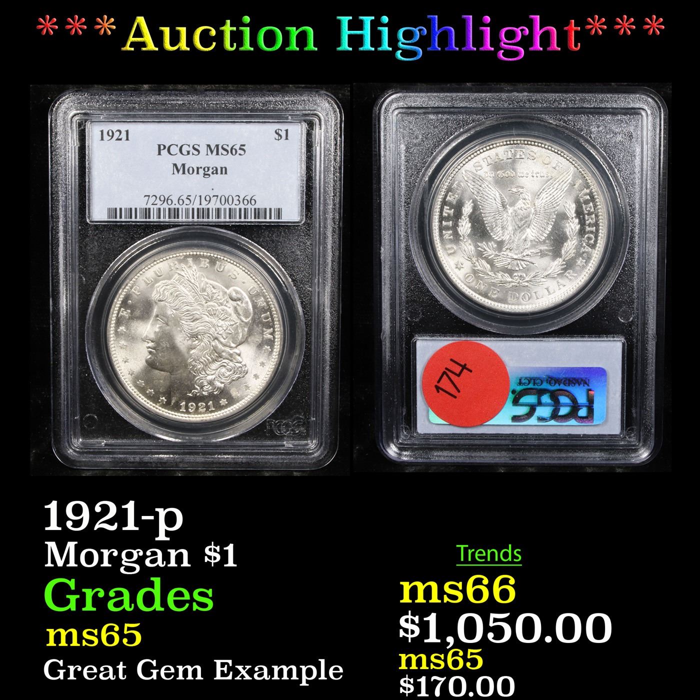 ***Auction Highlight*** PCGS 1921-p Morgan Dollar $1 Graded ms65 By PCGS.