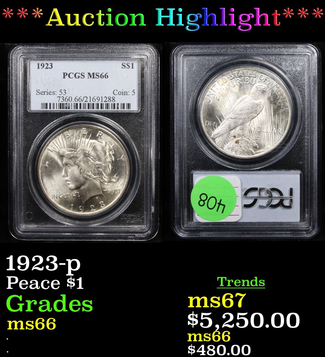 ***Auction Highlight*** PCGS 1923-p Peace Dollar $1 Graded ms66 By PCGS.