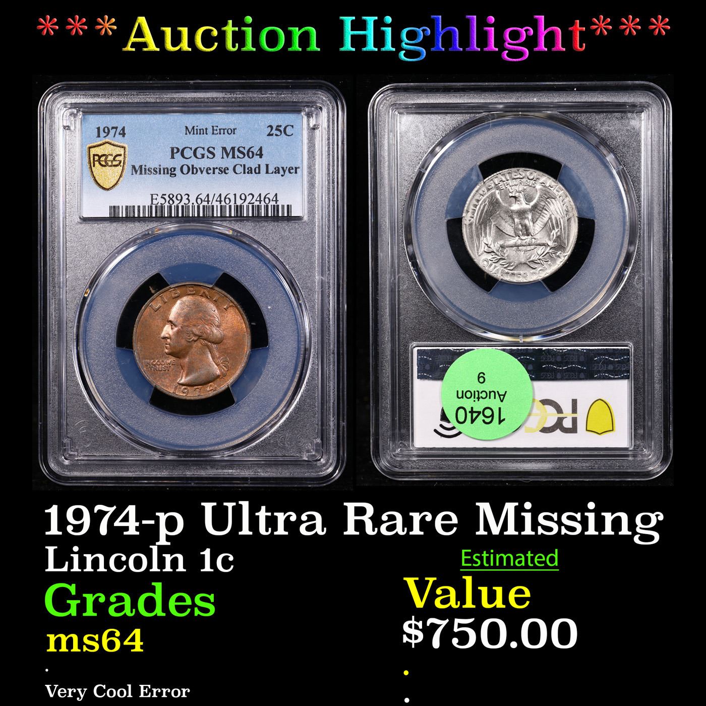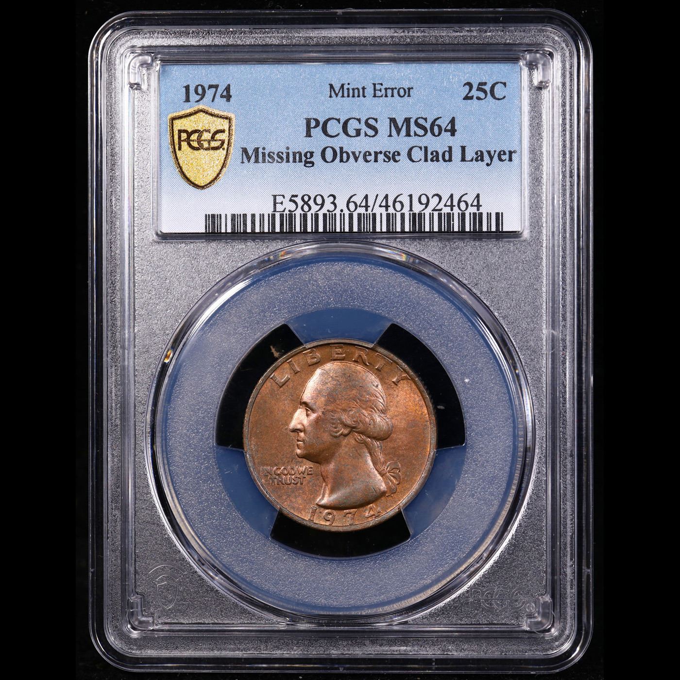 ***Auction Highlight*** PCGS 1974-p Washington 25c Ultra Rare Missing Obv Clad Layer Mint Error 25c Graded ms64 By PCGS (fc) A Corey's Pick, Bid to Win, Don't let it get Away Coin