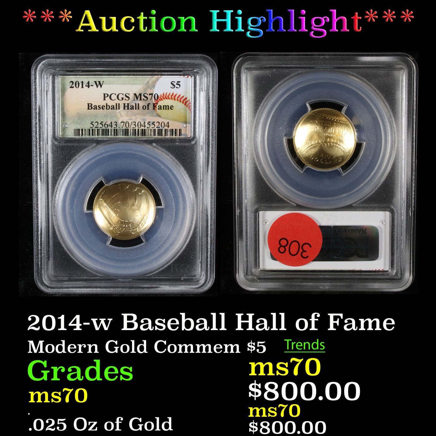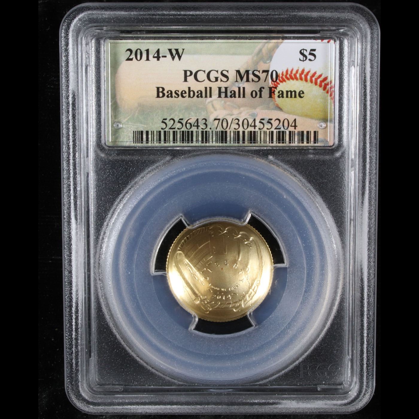 ***Auction Highlight*** PCGS 2014-w Baseball Hall of Fame Modern Commem $5 Gold Graded ms70 By PCGS