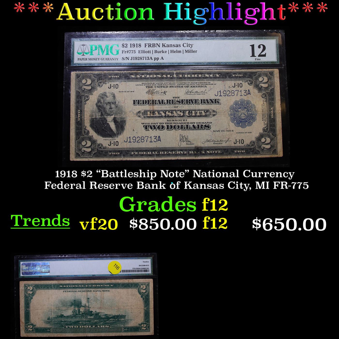 ***Auction Highlight*** PMG 1918 $2 "Battleship Note" National Currency Federal Reserve Bank of Kan