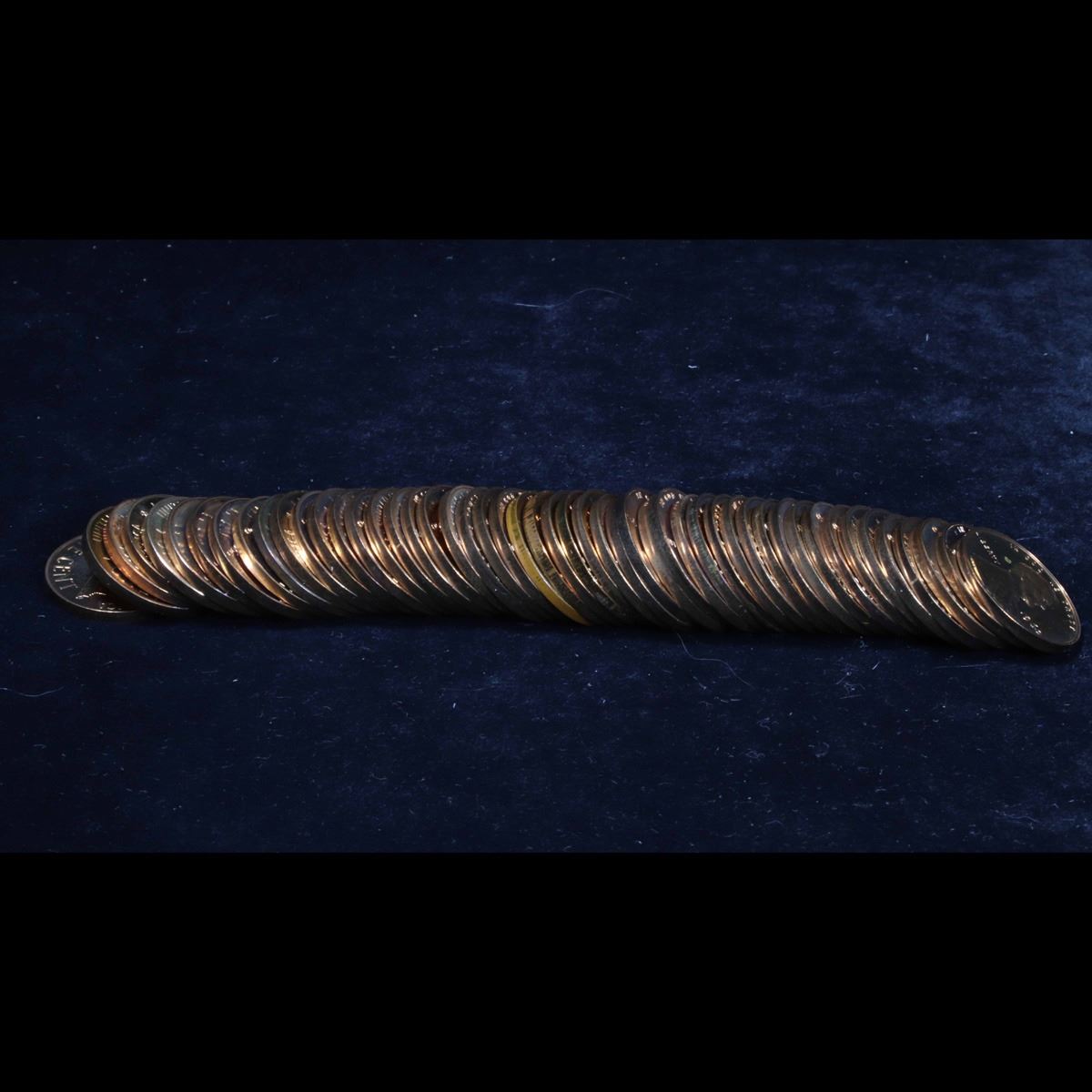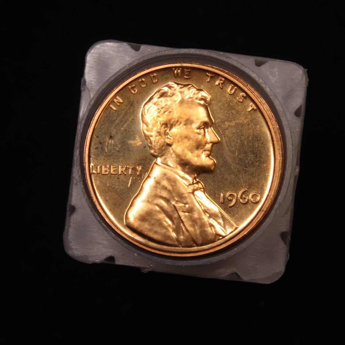 ***Auction Highlight*** Proof 1960 Lincoln cent 1c roll, 50 pieces (fc). A terrific proof roll of Lincoln cents. All red, some cameo and deep cameo possible. Trends pr68rd is $65/coin and pr67rd is $30/coin. Estimate $1500