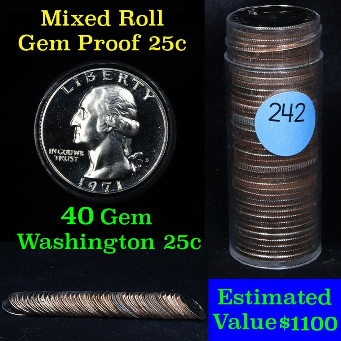 ***Auction Highlight*** Proof Mixed Washington Quarter 25c roll, 1968-2011, 40 pieces (fc). A great proof mixed roll of Washington Quarters. Many cameo and deep cameo. In pr69 cam, it trends $27.50/coin, $1100.