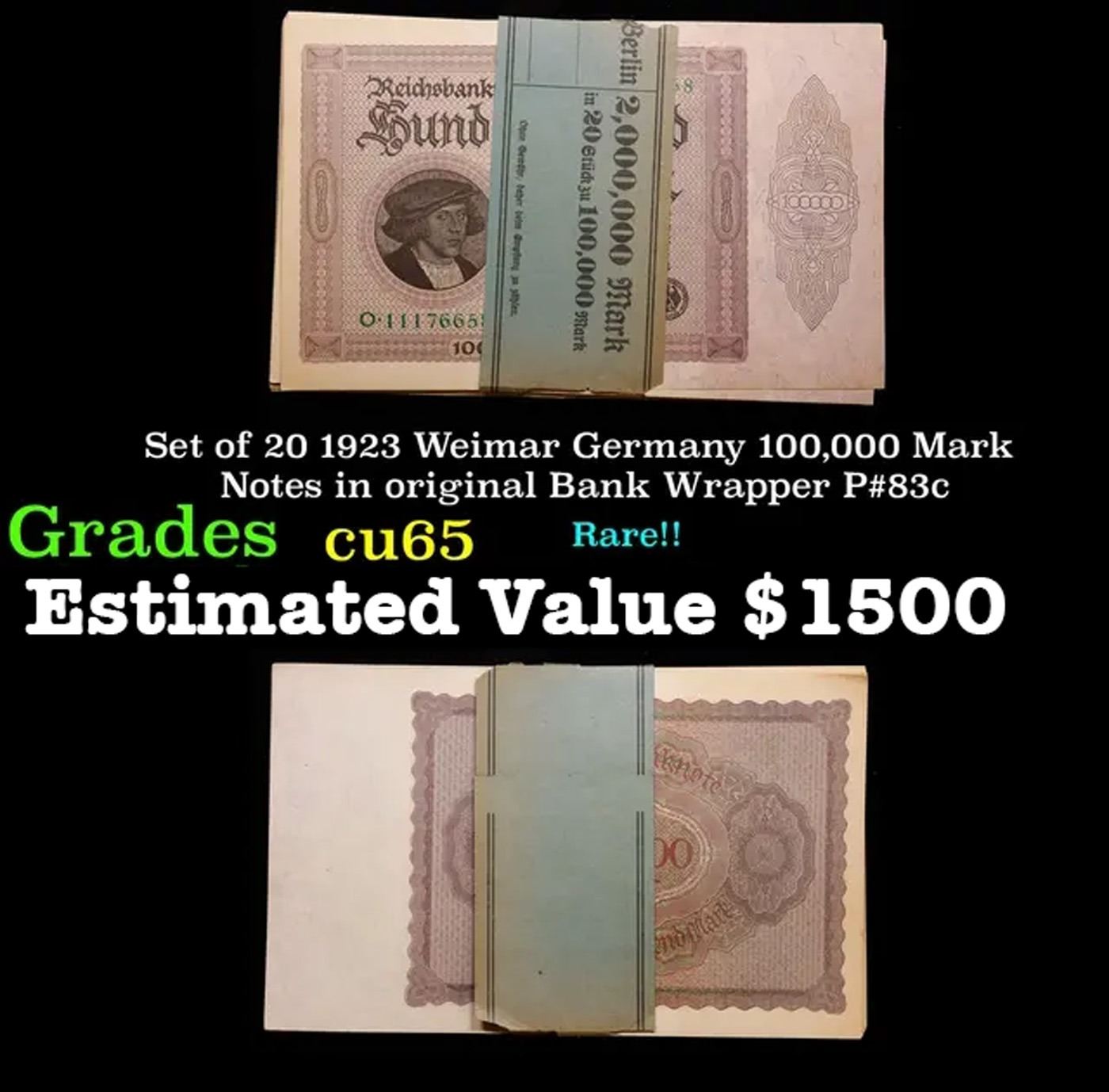 ***Auction Highlight*** Set of 20 1923 Weimar Germany 100,000 Mark Notes In Original Bank Wrapper Gr