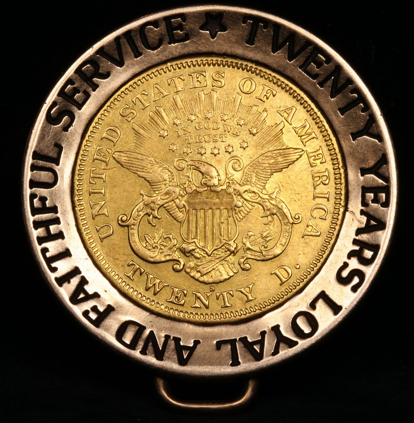 ***Auction Highlight*** Solid Gold 20 Years of Service 1876-s $20 Gold Eagle w/ Solid Gold Bezel, we