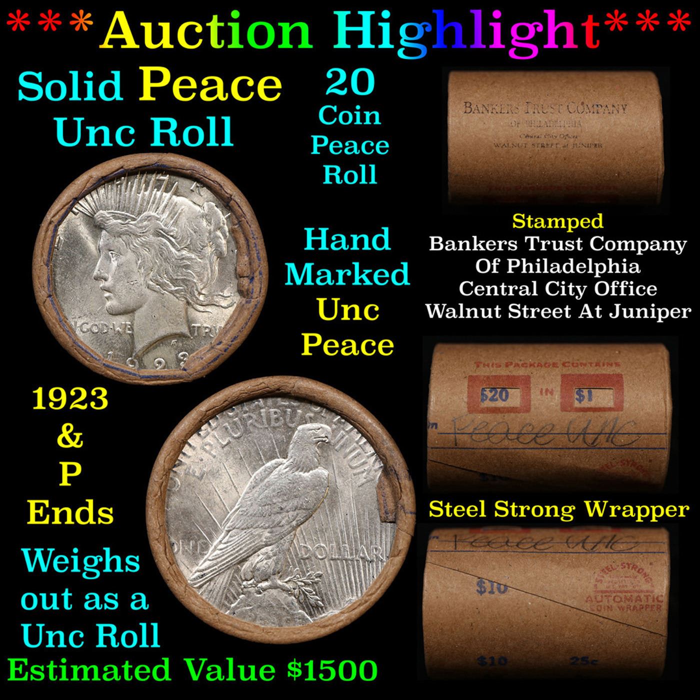 ***Auction Highlight*** Solid Uncirculated Peace silver dollar roll 1923 & P Ends, 20 coins (fc)