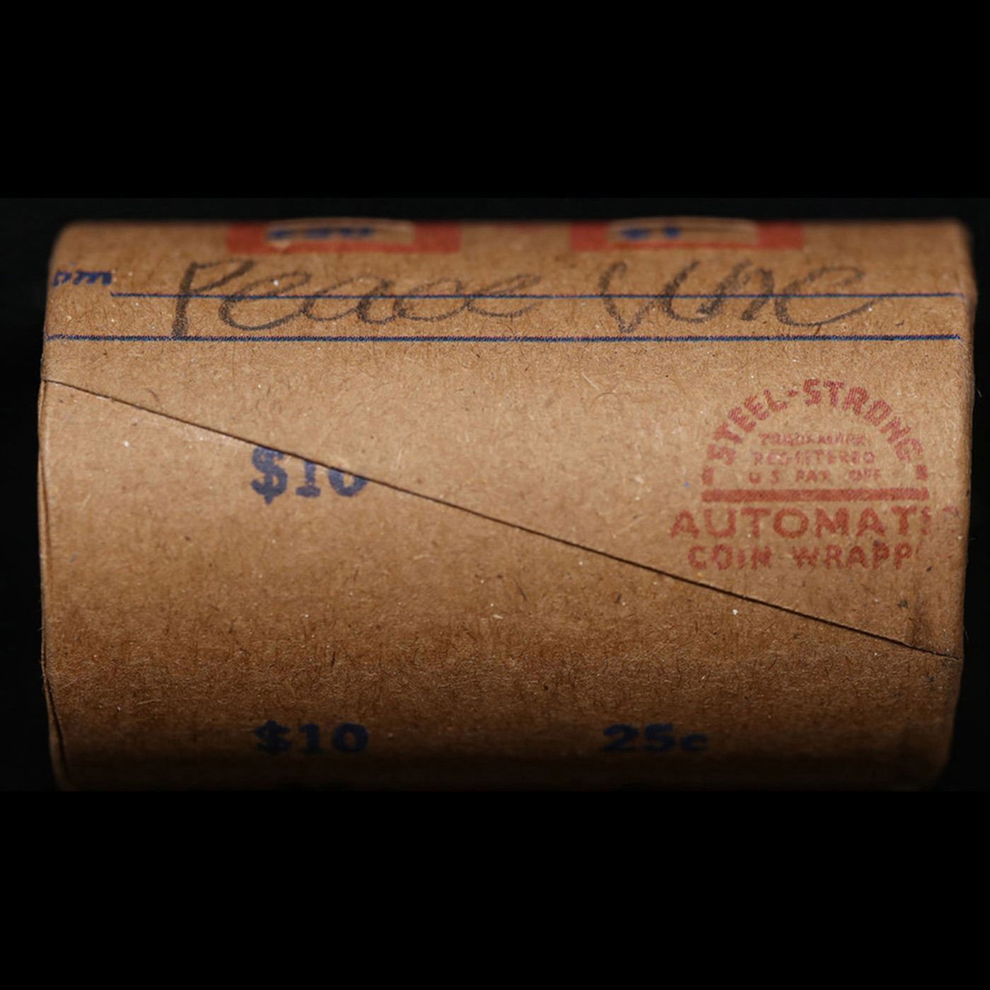 ***Auction Highlight*** Solid Uncirculated Peace silver dollar roll 1923 & P Ends, 20 coins. This roll is held in an old Steel strong wrapper, patented 1921, stamped "Bankers Trust Company of Philadelphia, Walnut Street at Juniper". This roll contains 20, Uncirculated Peace silver Dollars Any Date Or Mint Mark Is Possible Hand Marked Peace Unc. Based on the weight this is an uncirculated roll. We recently Acquired a large Estate Hoard of Uncirculated Rolls.
