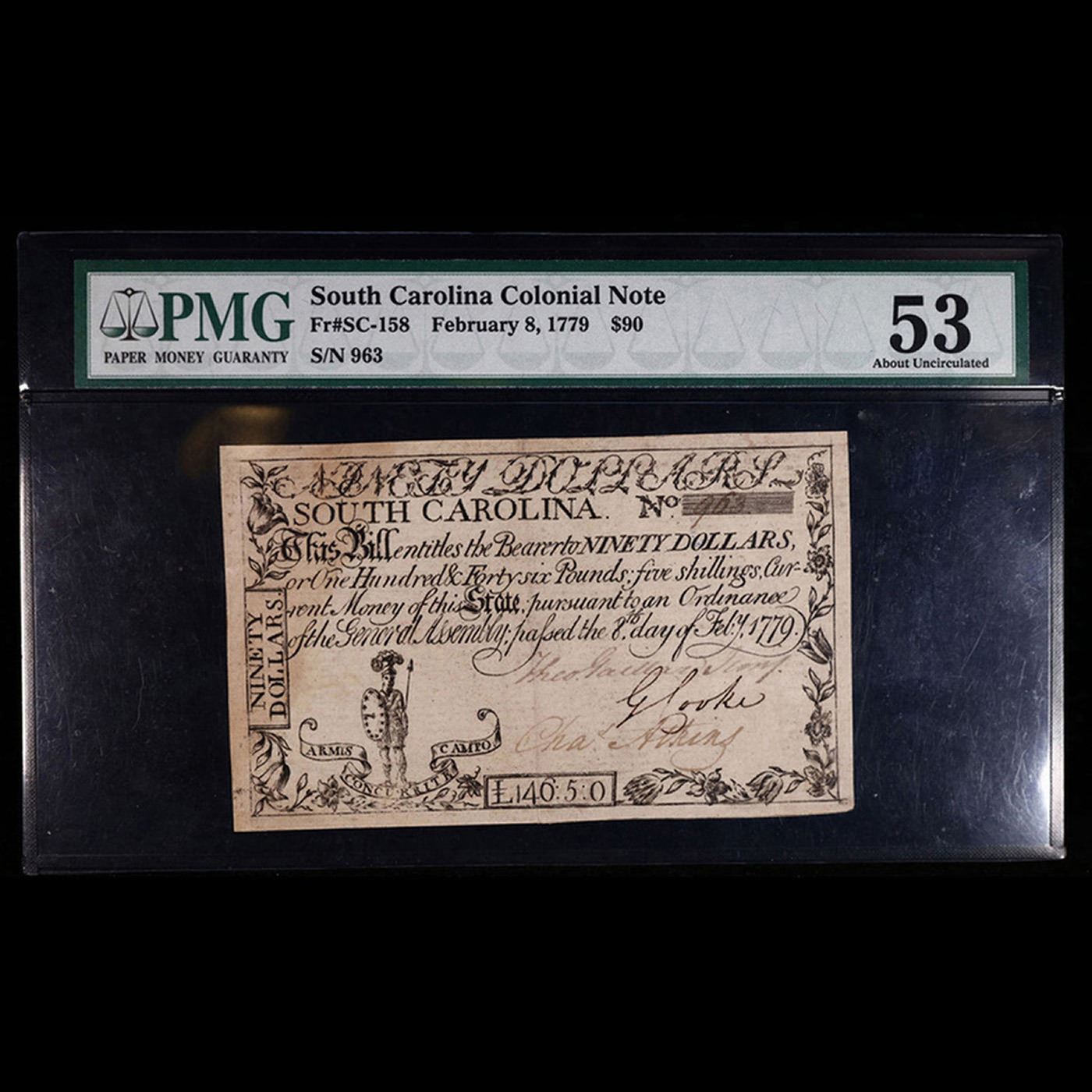 ***Auction Highlight*** South Carolina Colonial Currency Febuary 8th, 1779 $90 "Hercules" Note FR-SC