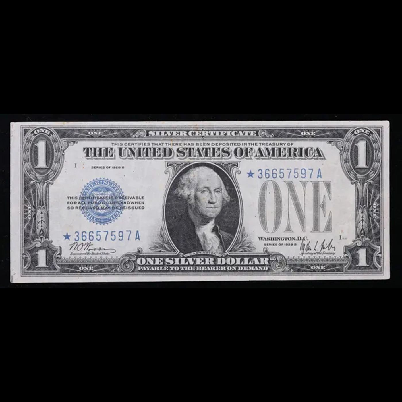 ***Auction Highlight*** **Star Note** 1928B $1 Blue Seal Silver Certificate "funnyback" Grades Select CU. A Key Date's Pick, Bid to Win, Don't let it get Away Coin