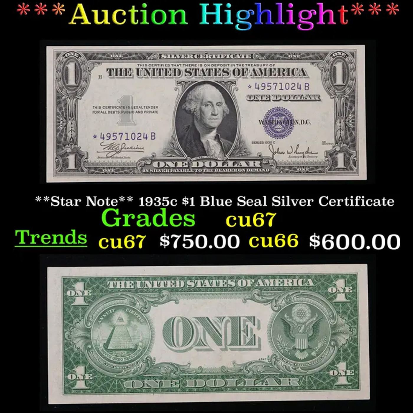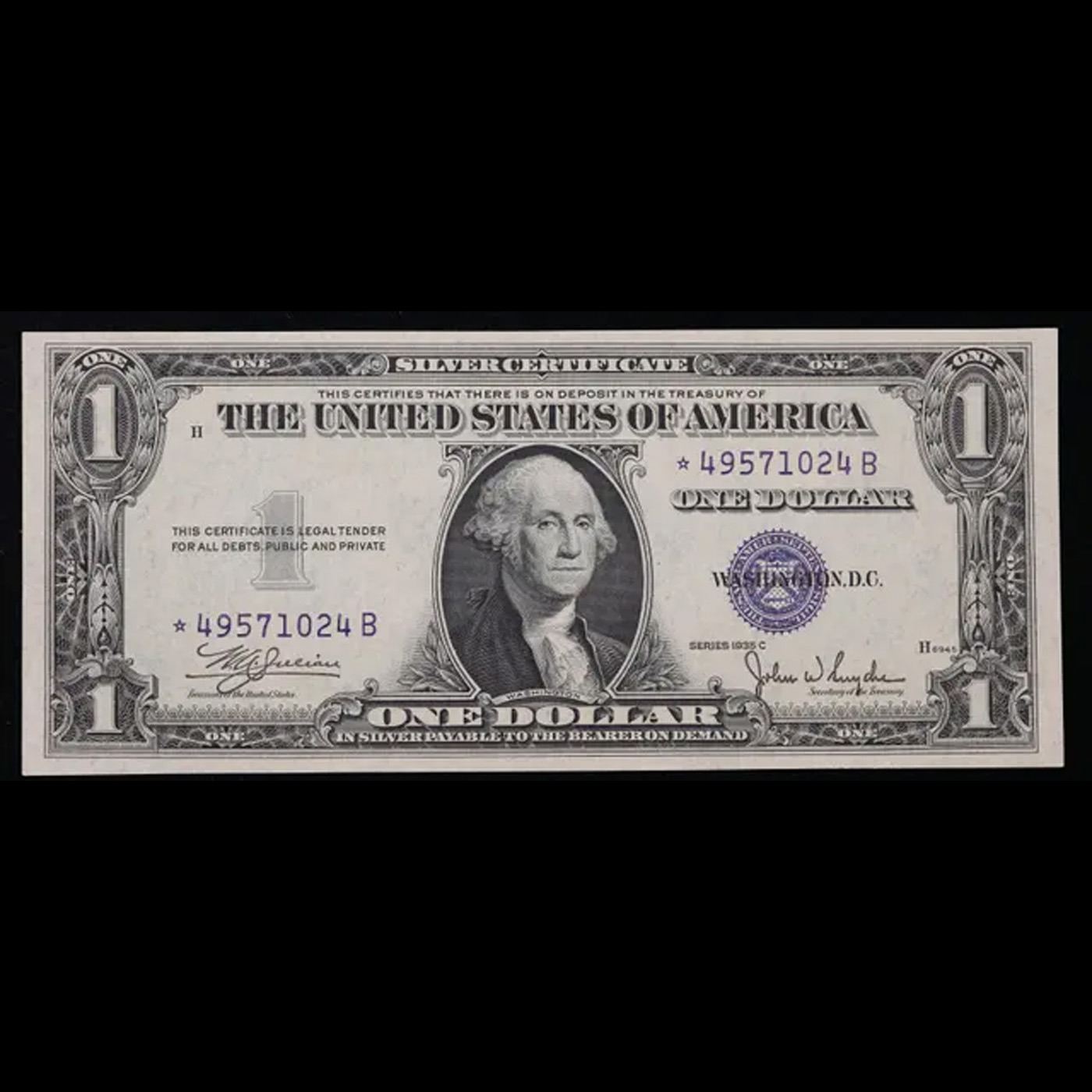 ***Auction Highlight*** **Star Note** 1935c $1 Blue Seal Silver Certificate Grades Gem++ CU. A Key Date's Pick, Bid to Win, Don't let it get Away Coin