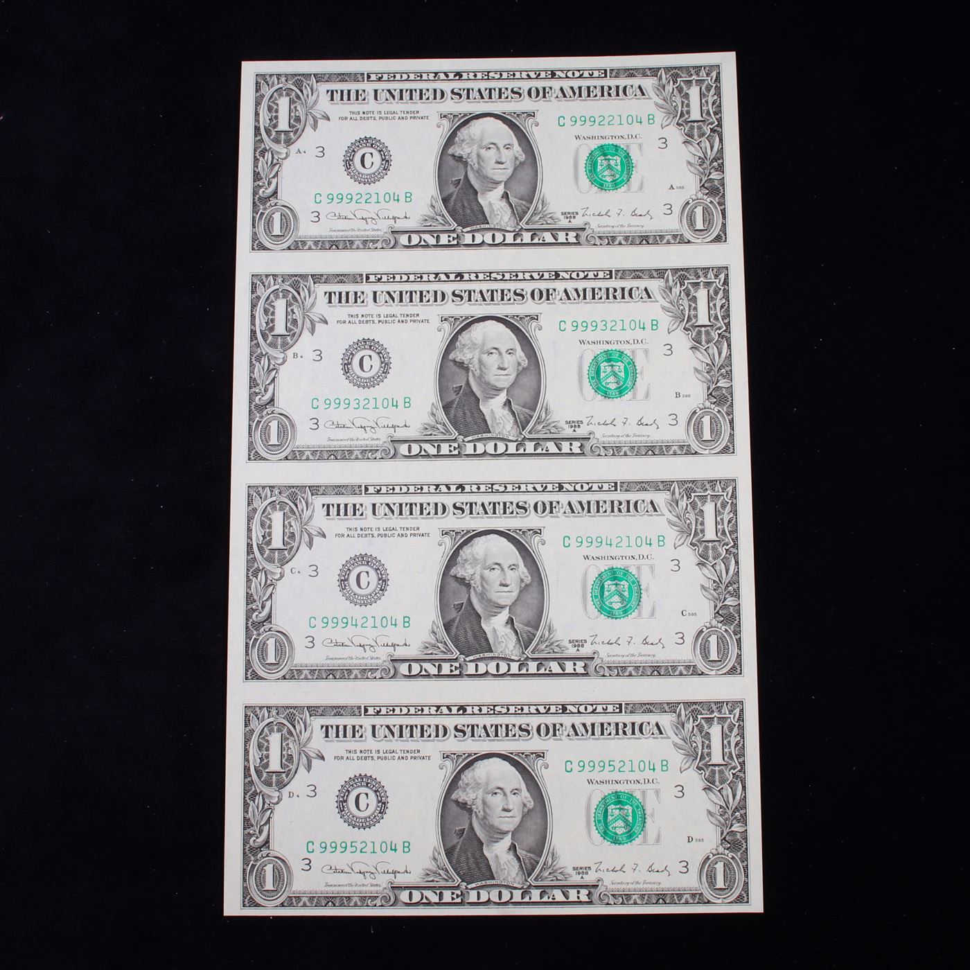 ***Auction Highlight*** UNCUT MINT SHEET of 4x 1988a $1 Federal Reserve Notes All GEM or Better 999