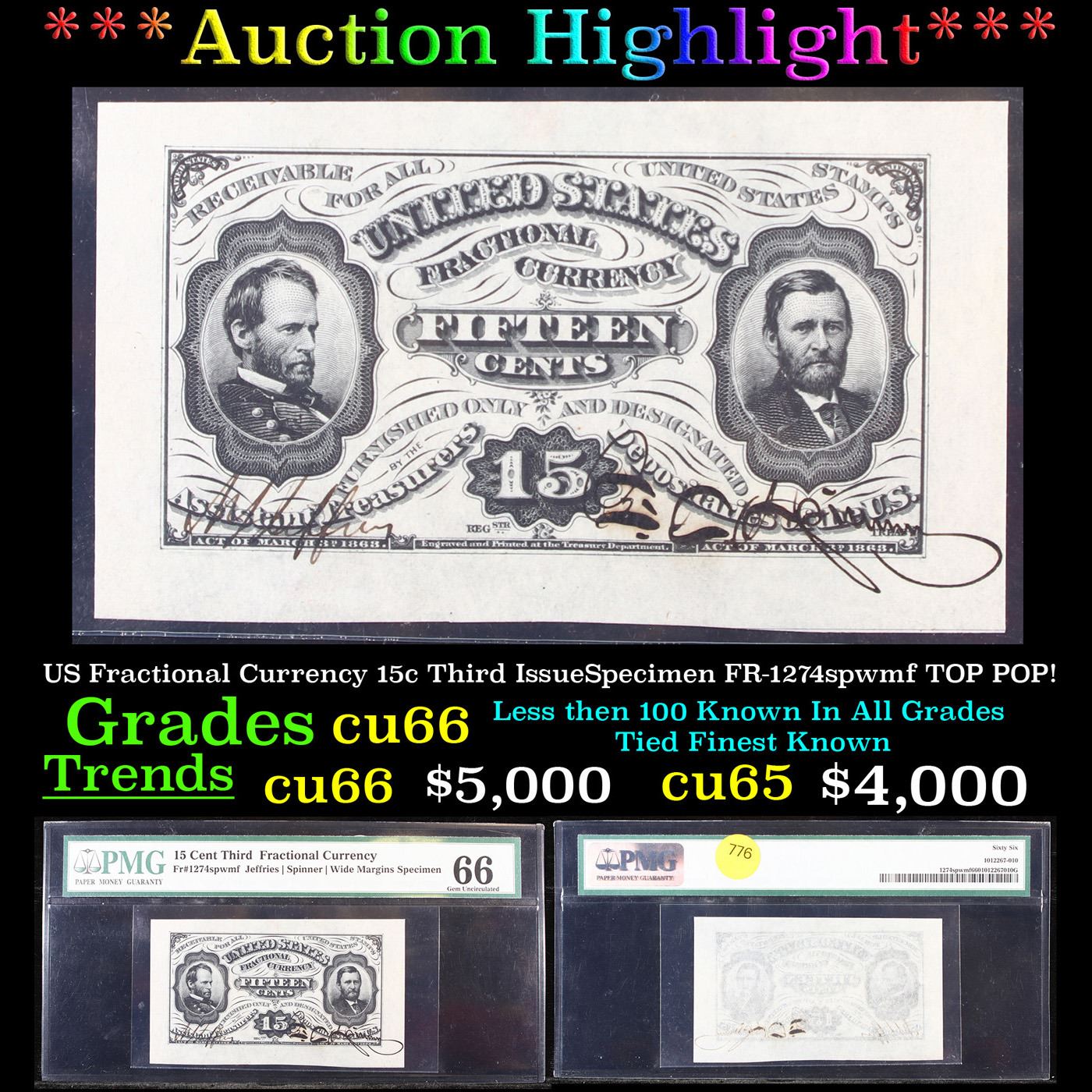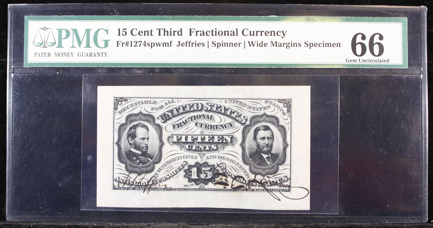 ***Auction Highlight*** US Fractional Currency 15c Third IssueSpecimen FR-1274spwmf TOP POP! Graded cu66 By PMG. Less then 100 Known In All Grades Tied Finest Known