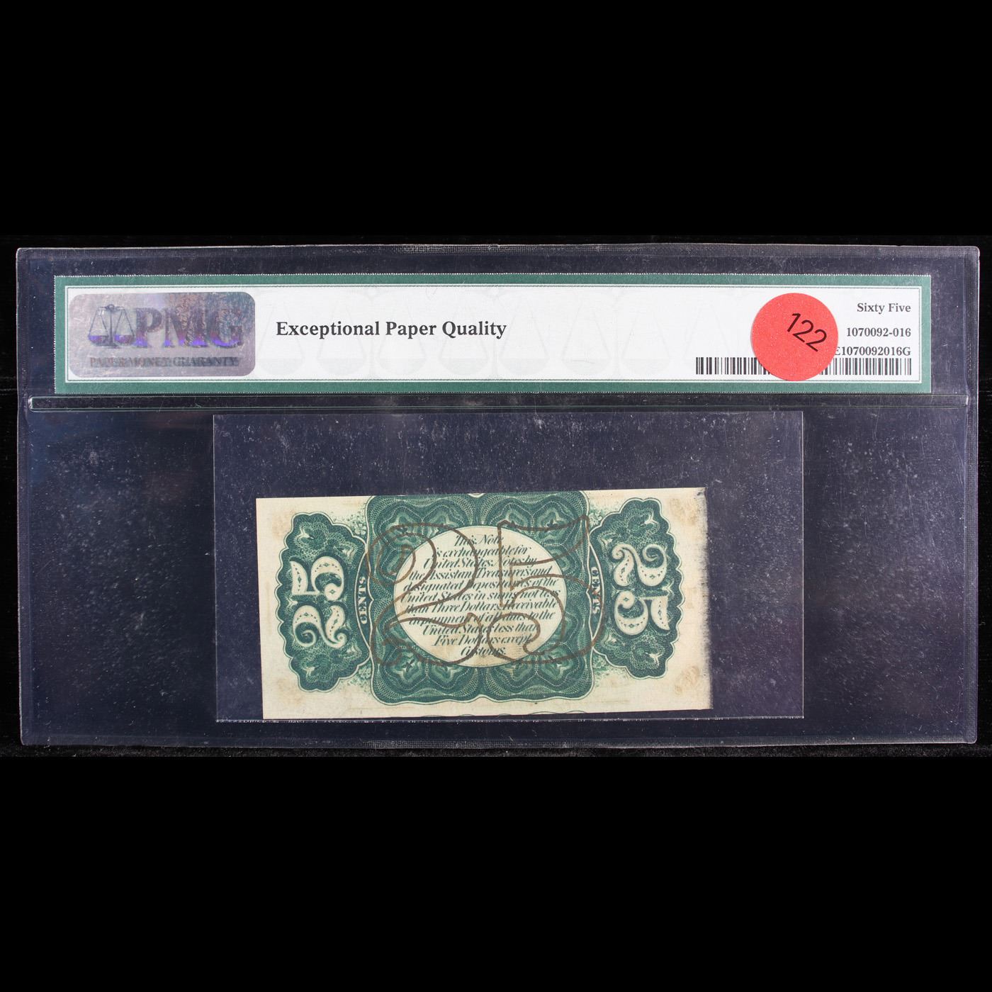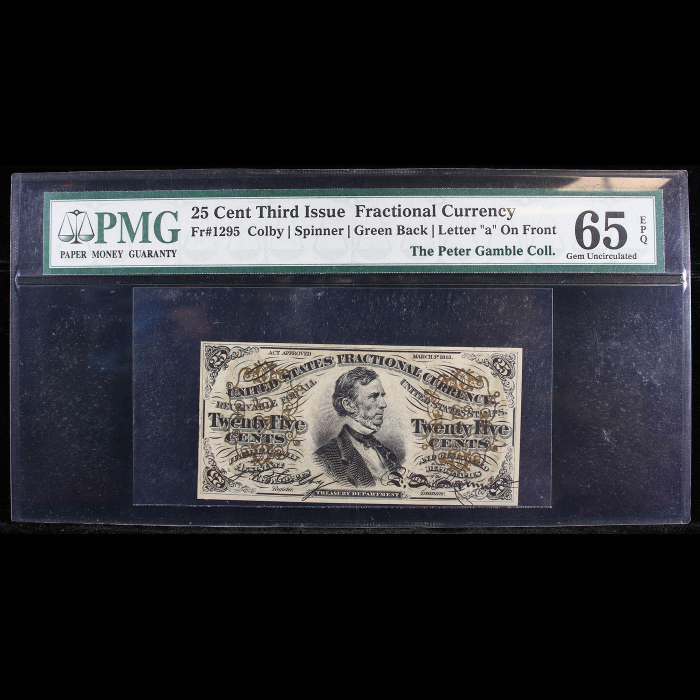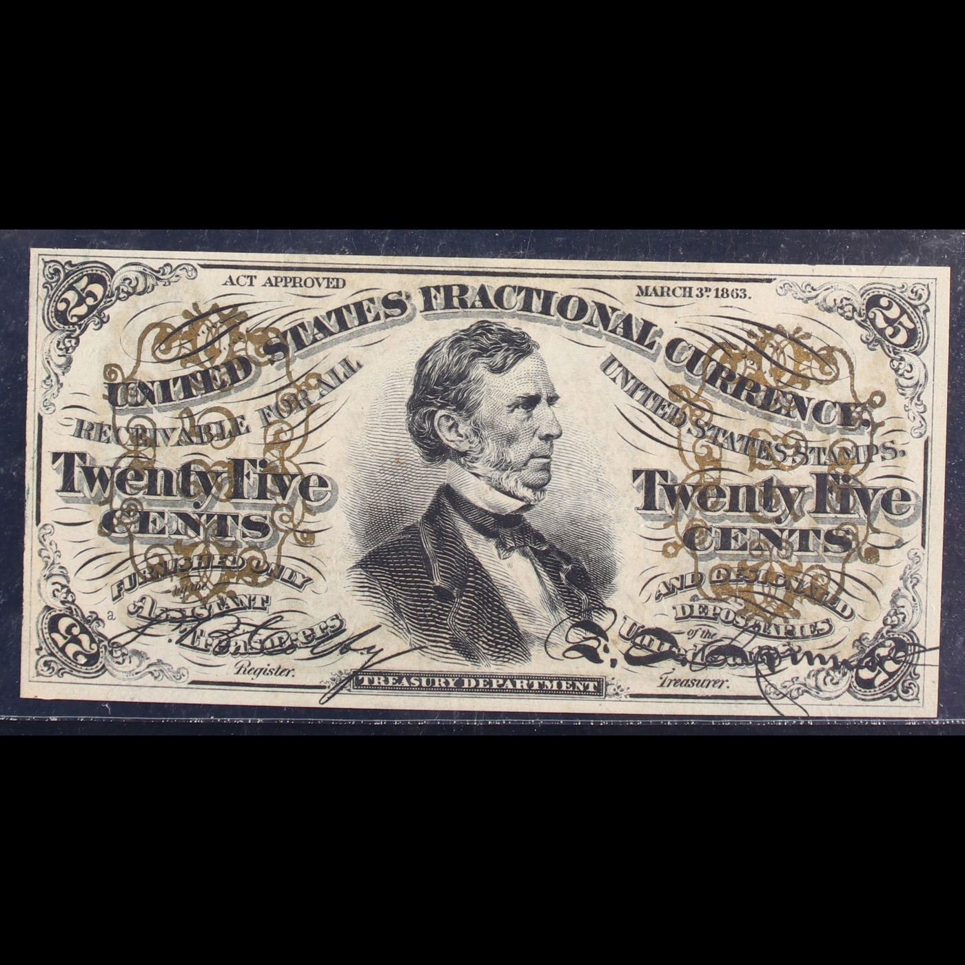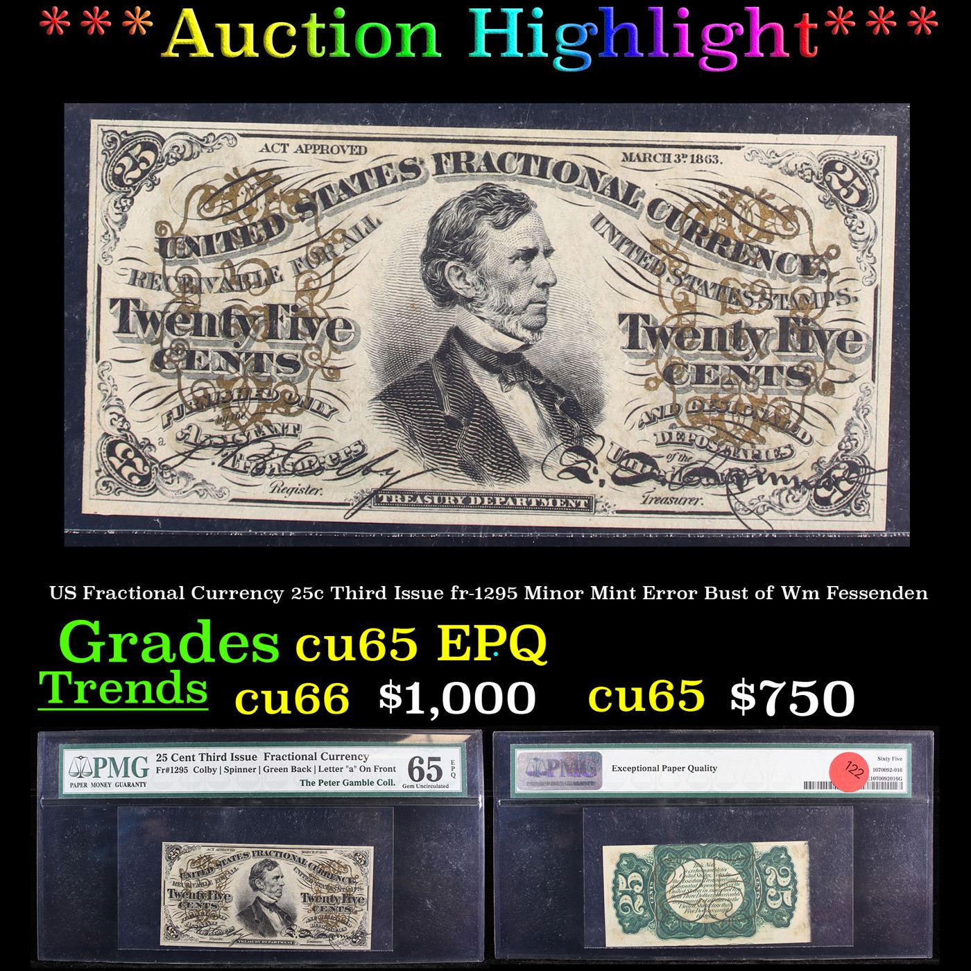 ***Auction Highlight*** US Fractional Currency 25c Third Issue fr-1295 Minor Mint Error Bust of Wm Fessenden Graded cu65 EPQ By PMG.