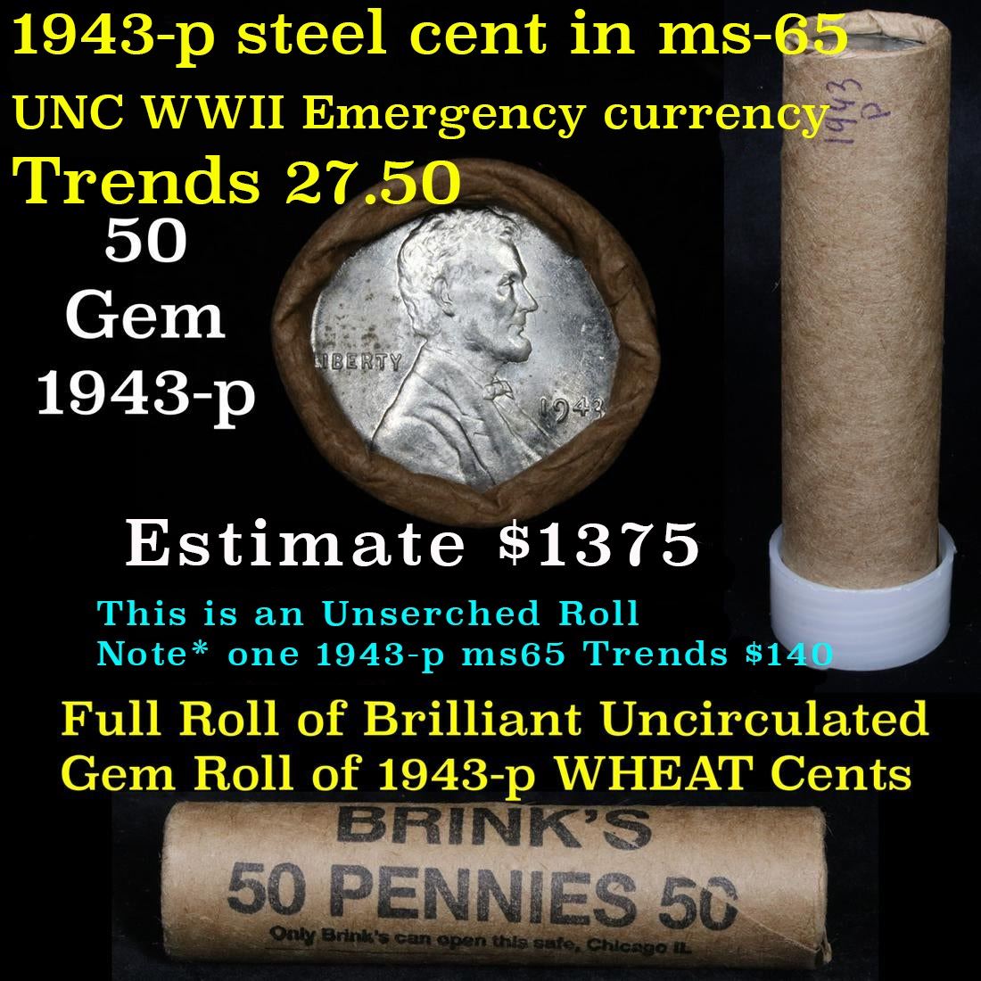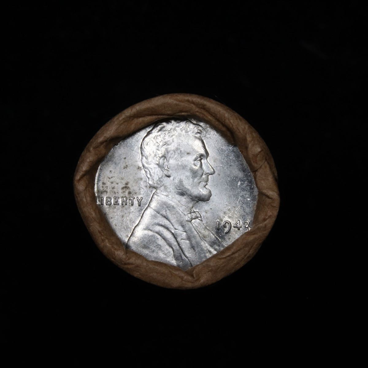 ***Auction Highlight*** Uncirculated 1c orig shotgun roll, 1943-p Steel cents In Old Brinks wrapper
