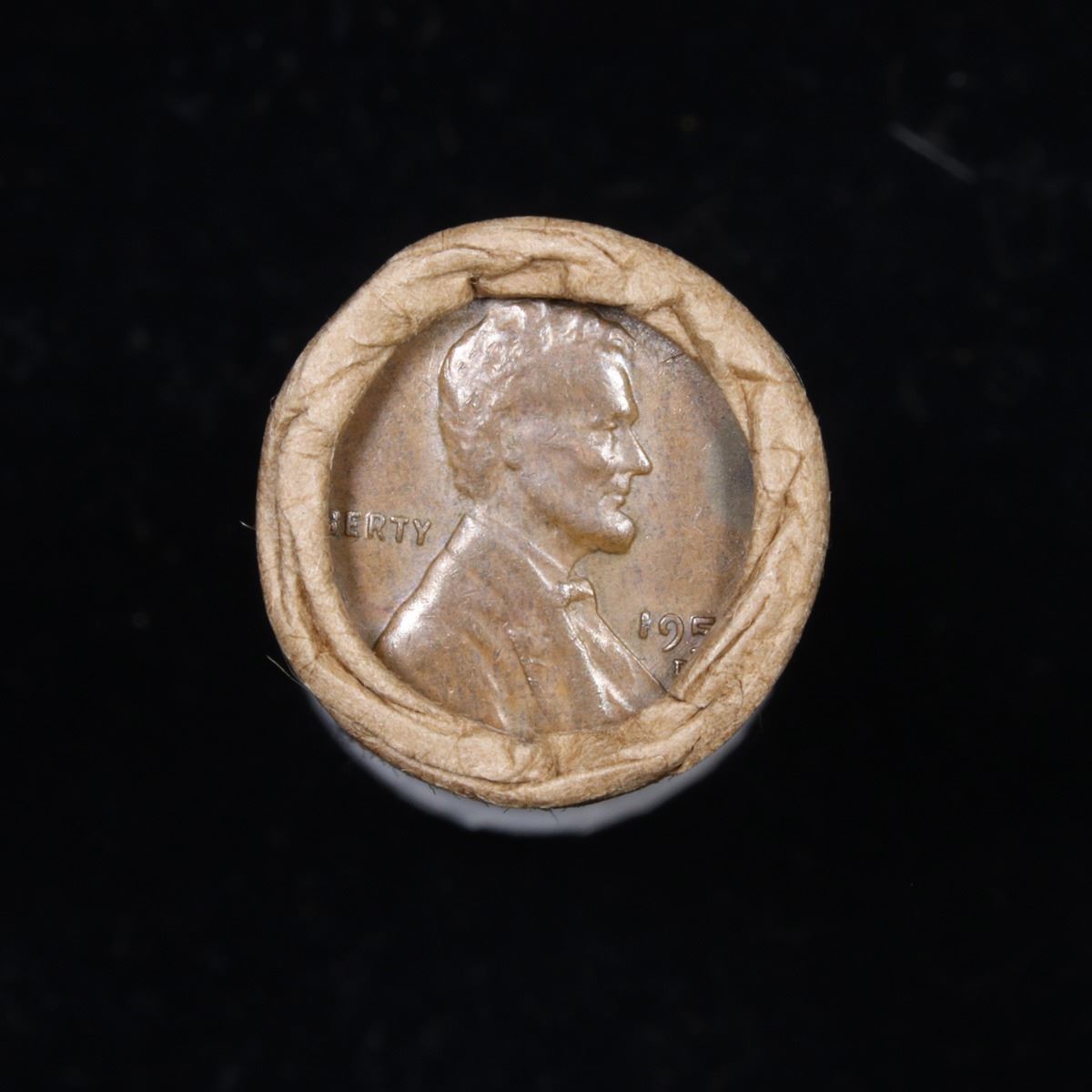 ***Auction Highlight*** Uncirculated 1c orig shotgun roll, 1957-d In Old Brinks wrapper (fc)