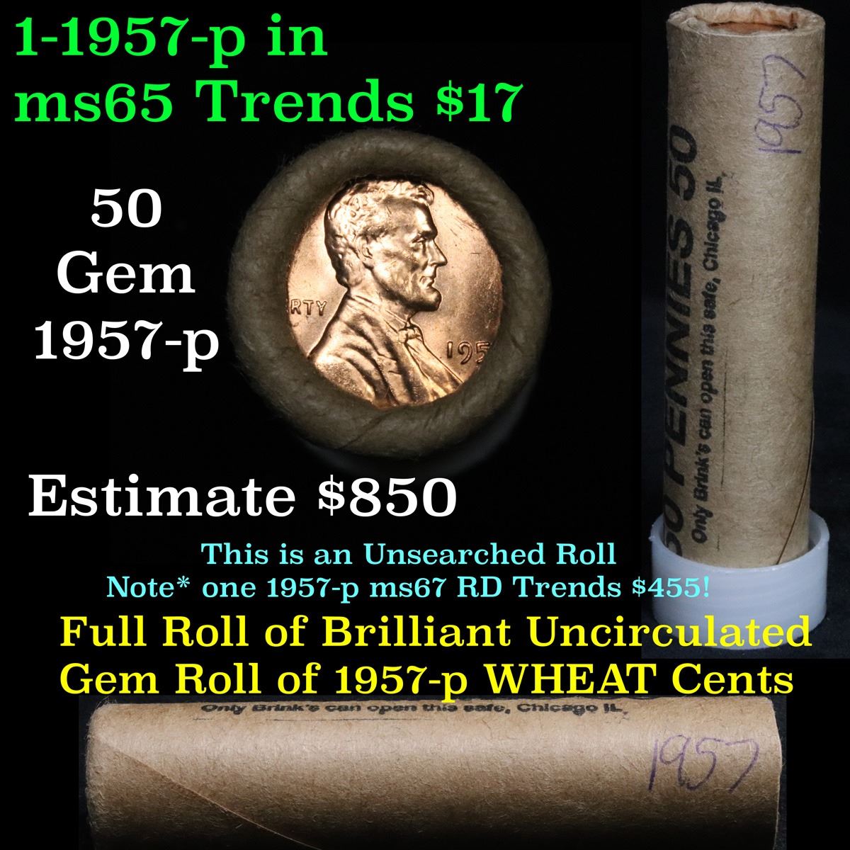 ***Auction Highlight*** Uncirculated 1c orig shotgun roll, 1957-p (fc)