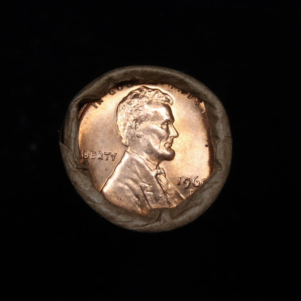 ***Auction Highlight*** Uncirculated 1c orig shotgun roll, 1960-d In Old Brinks wrapper (fc)