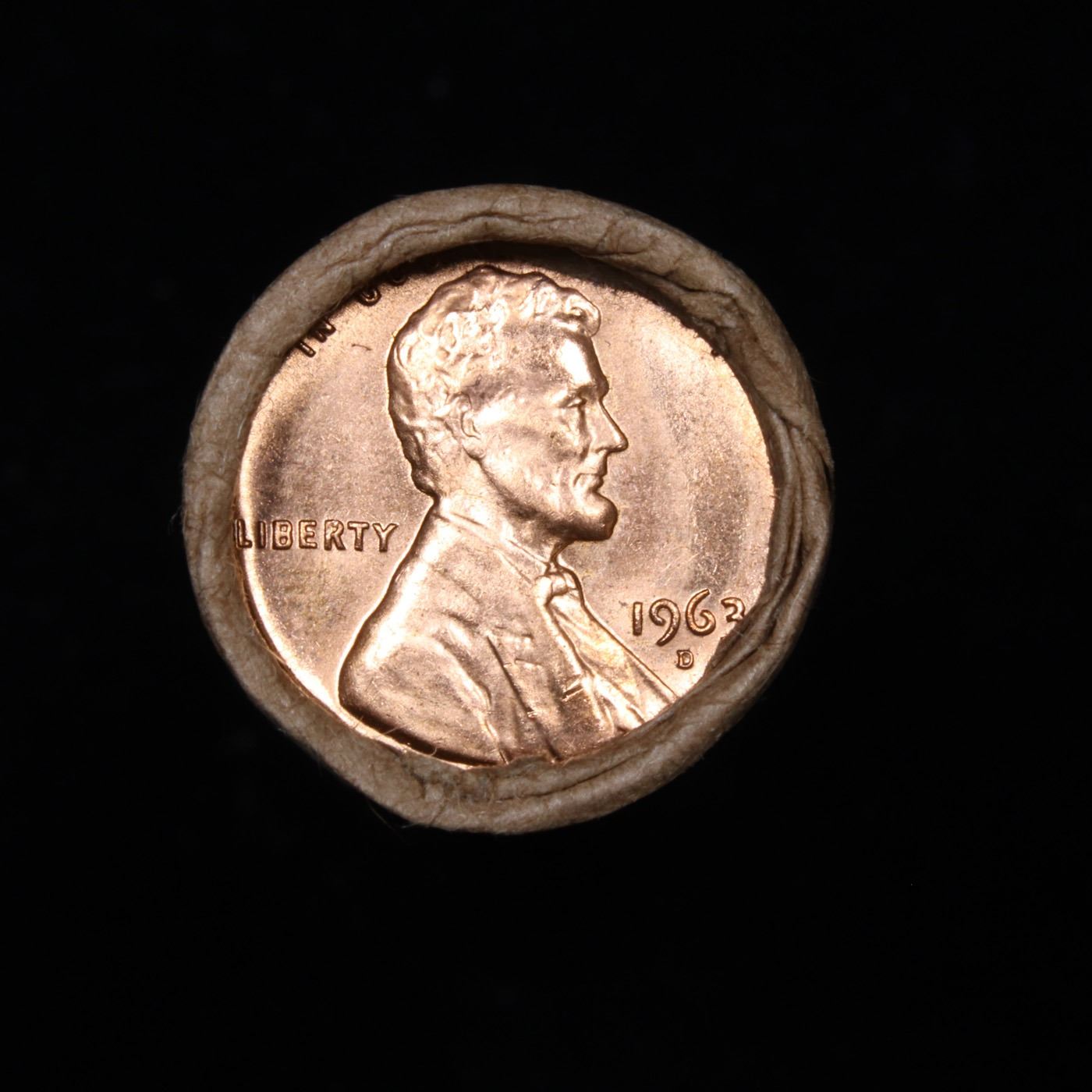 ***Auction Highlight*** Uncirculated 1c orig shotgun roll, 1963-d In Old Brinks wrapper Grades (fc