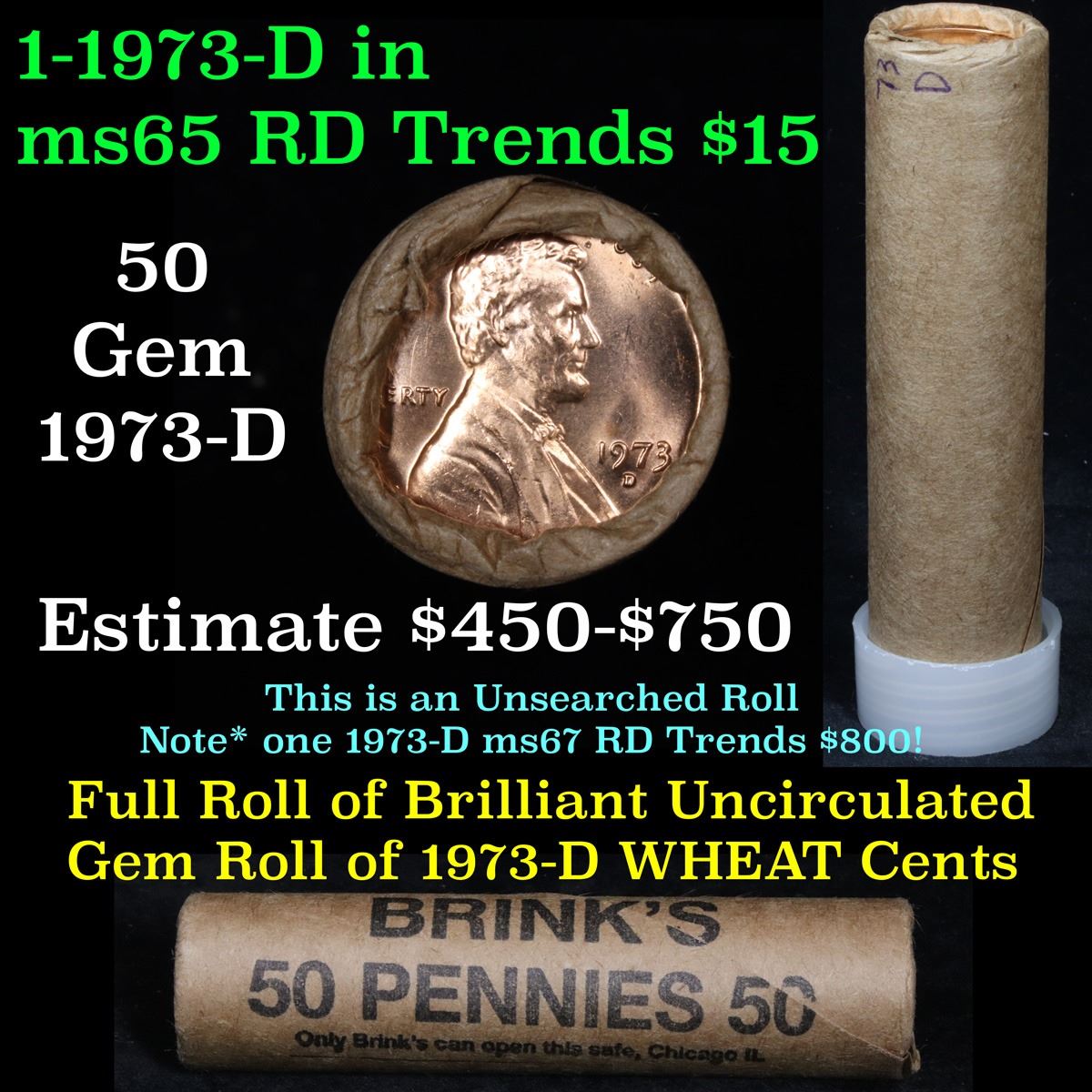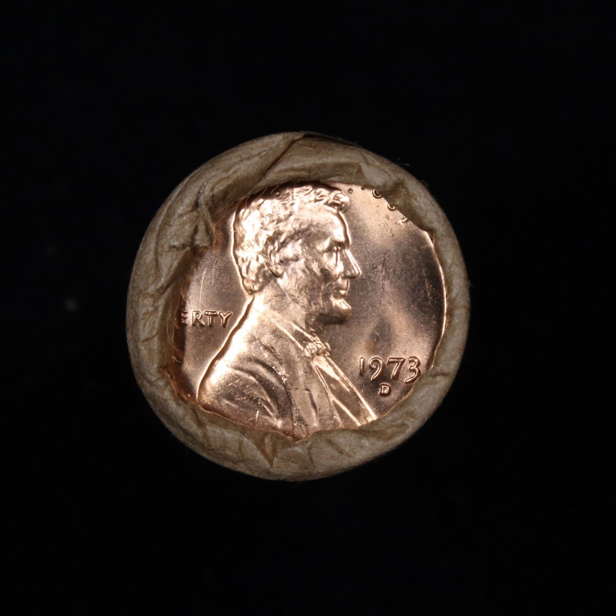 ***Auction Highlight*** Uncirculated 1c orig shotgun roll, 1973-d In Old Brinks wrapper (fc)