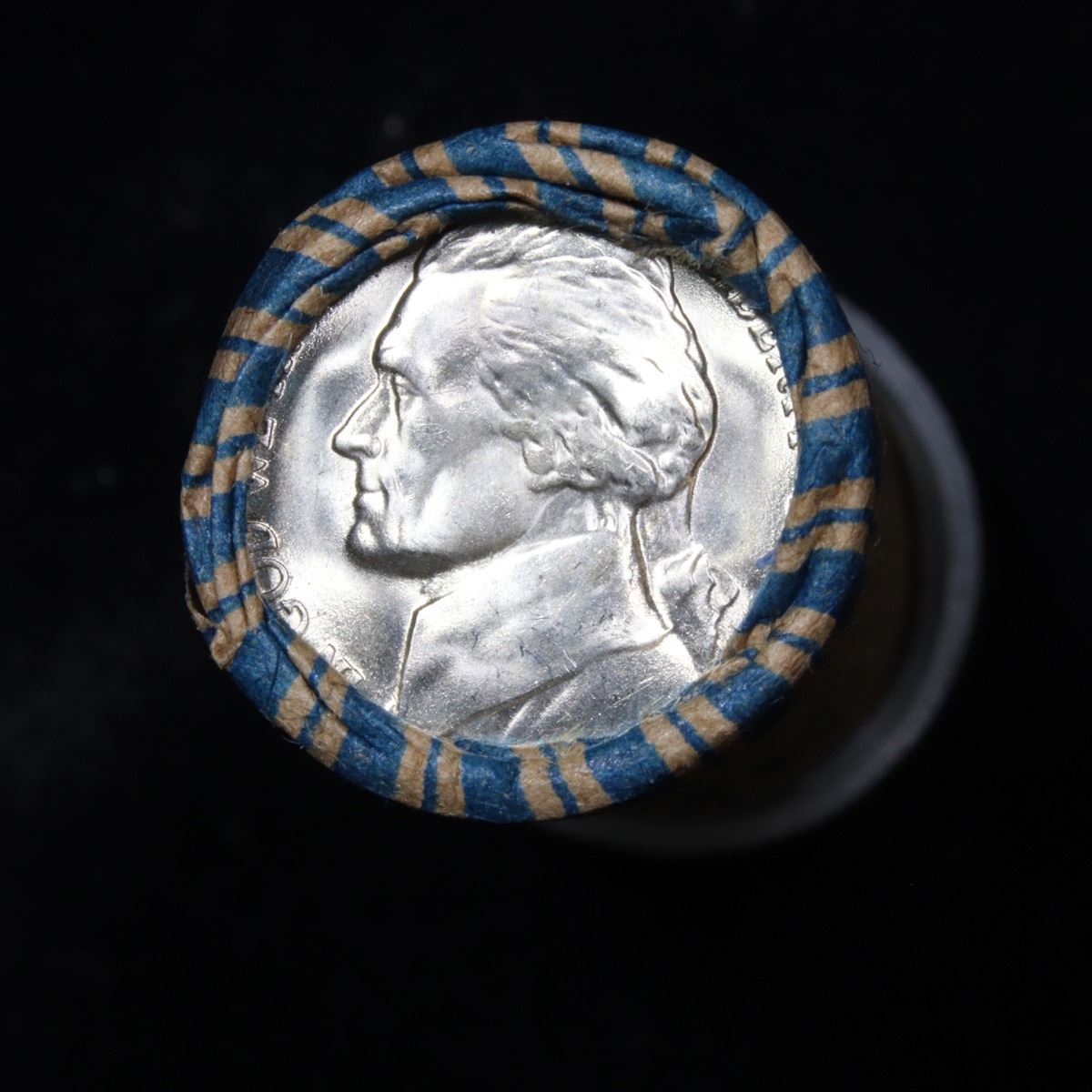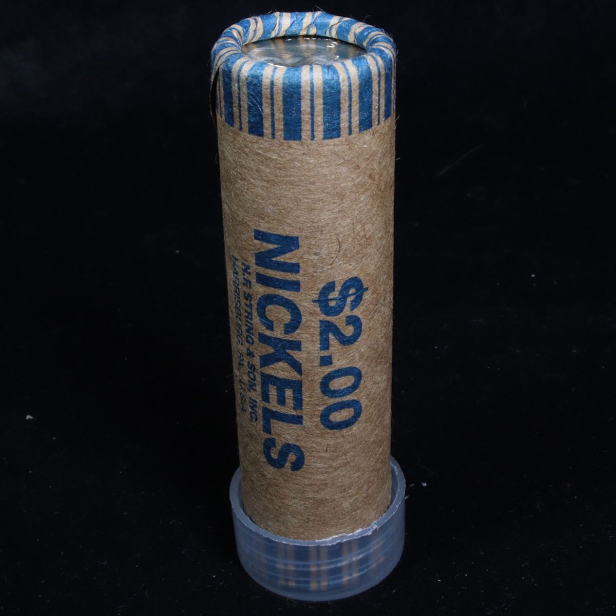 ***Auction Highlight*** Uncirculated 5c orig shotgun roll, 1945-s In N.F. String & Son Wrapper. ÊA terrific orig shotgun roll of Jefferson Nickel. This is in an N.F. String & Son Inc wrapper.ÊTrends ms65 $25. Estimate $1000