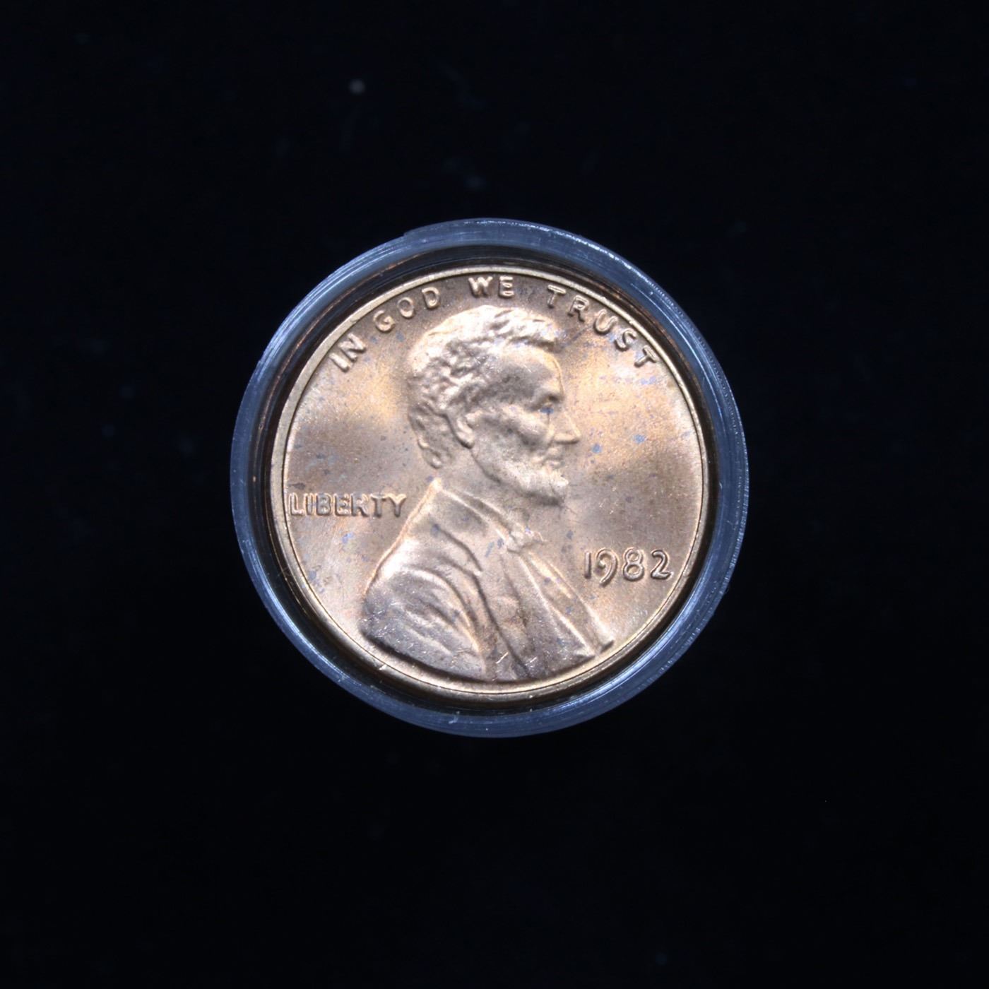 ***Auction Highlight*** Uncirculated Lincoln 1c roll, 1982-p Copper Large Date 50 pcs Grades. A terrific roll of Lincoln cents. All coins cherry red. Trends ms65 rd $10 Estimate $500