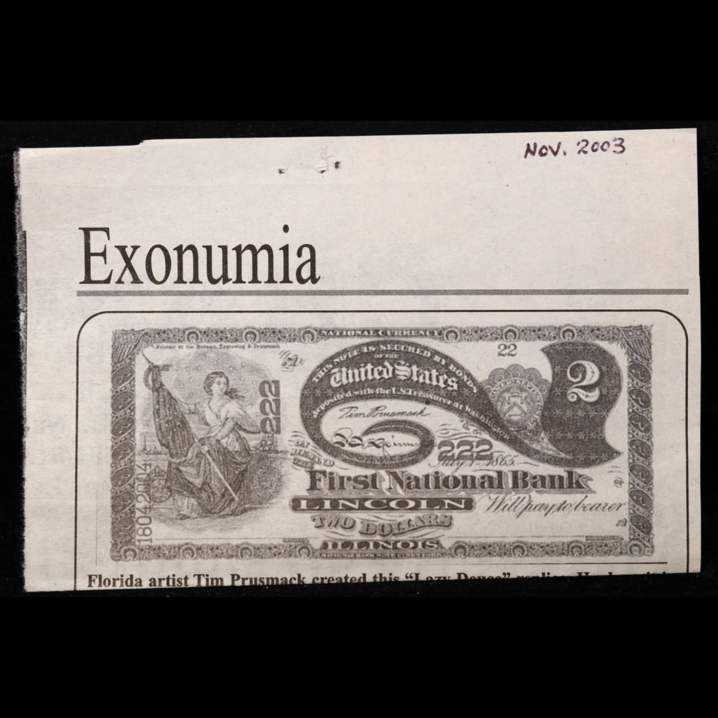 ***Auction Highlight*** Very Cool Tim Prusmack Money Art 1865 $2 "Lazy Duce" National Bank Note #51/