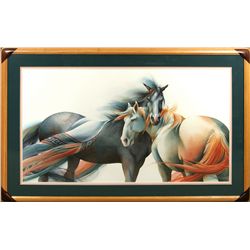 Melinda M. Cowdery (b. 1953). Two Friends. 27" x 47" watercolor. Signed lower left: Melinda M. Cowdery 97 © . (est. $1,500-3,500). CO...