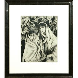 Gene Kloss (1903-1996). Cherry Blossom Time. 13 ¾" x 10 ¾" drypoint etching #5/50. Pencil signed lower right: Gene Kloss - Imp. ...