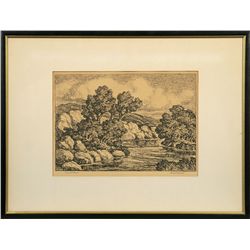 Birger Sandzen (1871-1954). Kansas River. 10" x 14 ¼" lithograph . Printed in 1951, edition of 100. Pencil signed lower right margin:...