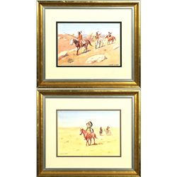 Leonard H. Reedy (1899-1956). Two 8" x 11" watercolors. 1. Cheyenne Warriors. Signed lower right: LEONARD H. REEDY. 2. The Peace Sign. Sig...