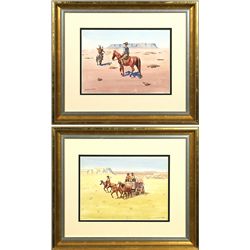 Leonard H. Reedy (1899-1956). Two 8" x 11" watercolors. 1. Mutual Respect. Signed lower left: LEONARD H. REEDY. 2. Wagons West. Signed low...