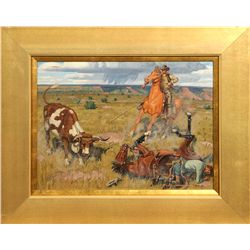 Dan Cody Muller (1889-1977). The Rustler. 24" x 30" oil on canvas. Signed lower left: DAN MULLER. (est. $2,500-3,500). Provenance: The S. ...