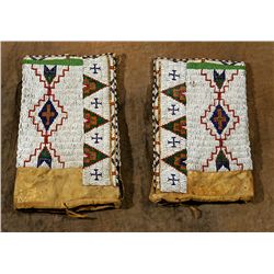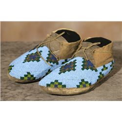 Blackfeet Man's Moccasins. 11" long. Beaded classic colors of translucent blue, yellow & green with faceted metal beads on a desirable ...