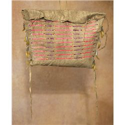 Sioux Beaded Doll. 11" tall & highly decorative with rare red hair made from dyed horse tail hair, a breastplate made of quills, fully bead...
