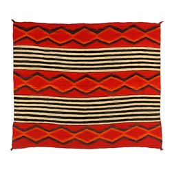 Crow Teepee Bag. 9" x 14" with rows of white-heart red, translucent blue & light blue beads. Edged in cloth with white beaded trim &am...