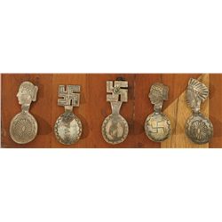 Navajo Concho Belt. 40" belt with seven conchos (4" x 3 ") separated by six butterflies (1 ?" x 2 ¾") all with a cente...