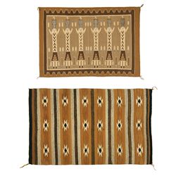 Two Grey Hills Weaving. 4' x 2'6". Fine Tapestry weave. Circa mid-1900s. (est. $2,000-3,000). CONDITION REPORTS: www.auctioninsantafe.c...