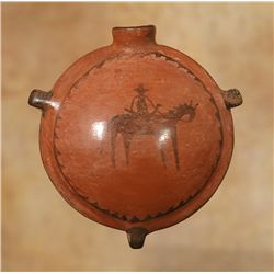 Hopi Canteen. 6 ½" x 6" x 4". Black on red designs. Early 1900s. (est. $600-800). CONDITION REPORTS: www.auctioninsantafe.com/do...