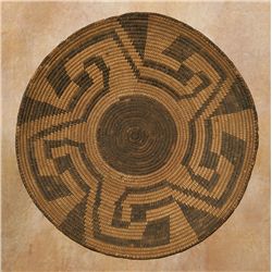 Papago Basketry Tray. 18" diameter, whirlwind design, 19th century. (est. $500-1,000). CONDITION REPORTS: www.auctioninsantafe.com/docs/cr2012....