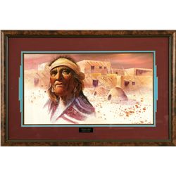 Robert A. Carver (b. 1940). Navajo Elder. 15" x 27" mixed media. Signed mid right: Carver 95. (est. $1,000-2,000). CONDITION REPORTS: www....