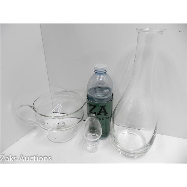 VINTAGE CONTEMPORARY GLASS DECANTER AND GRAVY BOWL