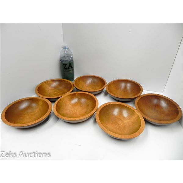 7 VINTAGE WOODEN SALAD BOWLS BARIBOCRAFT CANADA