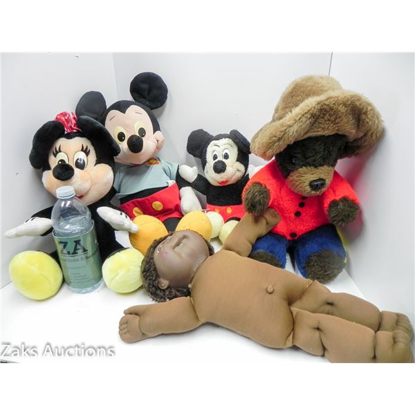 LARGE LOT OF VINTAGE STUFF ANIMAL TOYS. 70S/80S MCKEY MOUSE, CABBAGE PATCH DOLL, FIRE BEAR