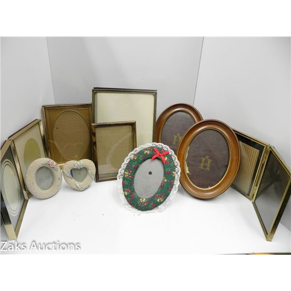 ESTATE LOT OF VTG PICTURE FRAMES. TALLEST MEASURES 9 INCHES