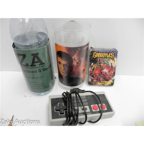 VINTAGE NES NINTENDO CONTROLLER AND GARGOYLES PLAYING CARDS & STAR TREK CUP