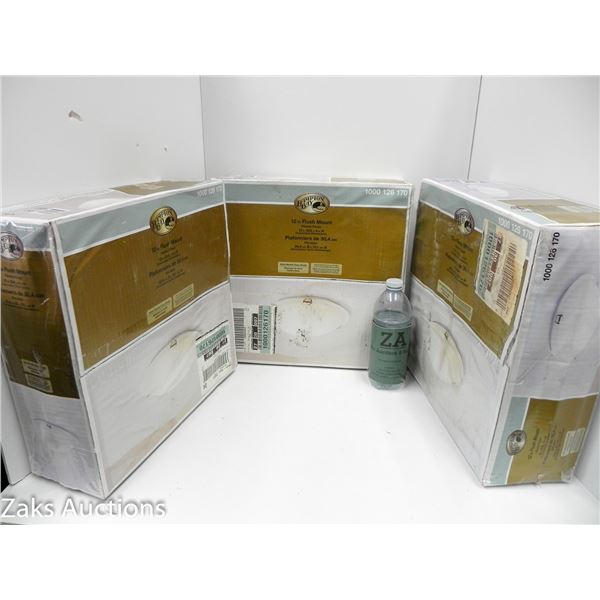 LOT OF 3 NEW HAMPTON BAY CEILING LIGHT FIXTURES 12 INCH FLUSH MOUNT PEWTER FINISH