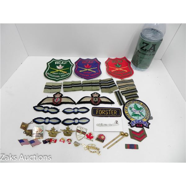 FANTASTIC LOT OF VINTAGE RCAF ET ALL PATCHES AND OTHER INSIGNIA. WARDAIR, KENYA PLUS OTHER PINS