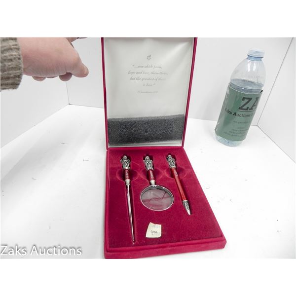 LOVE, HOPE, FAITH PEN, LETTER OPENER AND MAGNIFYING GLASS